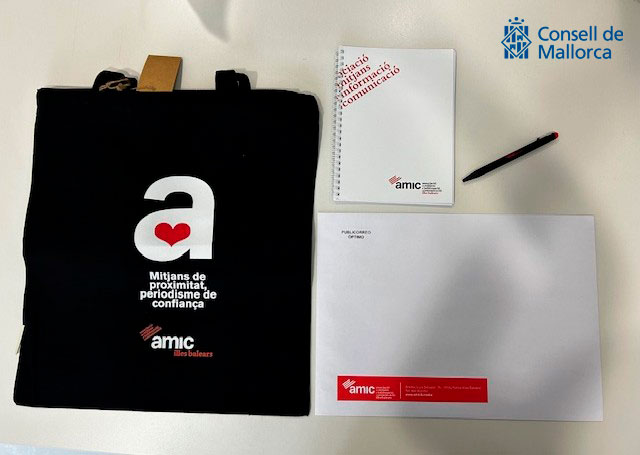 L’AMIC Illes Balears renova els materials de l’associació: llibretes, bolígrafs, sobres, porta-acreditacions i bosses corporatives, així com imprimeix dos nous roll-ups per potenciar els projectes a les Illes Balears i promocionar del concurs literari AMIC Ficcions, gràcies als ajuts per al foment de l’ús de la llengua catalana a les entitats sense ànim de lucre que impulsa el Consell Insular de Mallorca.